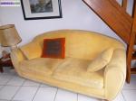 canapé fixe jaune en alcantara pied rond en bois très bon état cause : double emploi